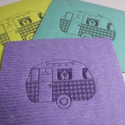 3 viskestykker med maskinbroderet husbil, lilla, gul, grøn. GRATIS FRAGT.