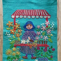 38x31 cm Vægbonad håndbroderet Påskekælling Påske RETRO VINTAGE blomster