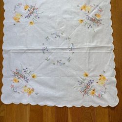 Vintage Broderet Dug med Blonderkant