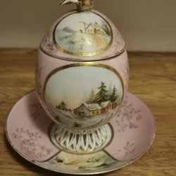 Antikke tyske mindekrus fra 1800/1900-tallet. Håndmalede guldtekster