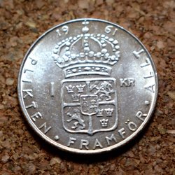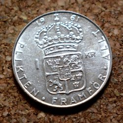 Sverige 1961 Sølv Mønt 1 Krone TS GVI Kv.9