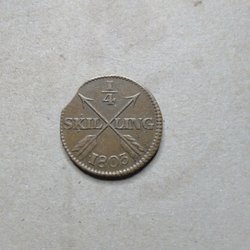 1/4 Skilling Mynt fra 1807.
