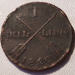 1 Skilling 1820. Ud 1 krone!