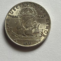 Svensk 2-krone – Gustav V – Jubilæum 1638–1938 – sølv