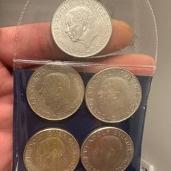 4 stykker 40% sølv-5 kroner - 1955
