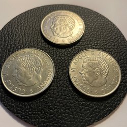 Tre stykker 40% sølv-5 kroner - 1954/55