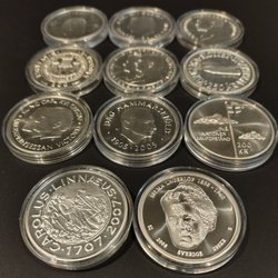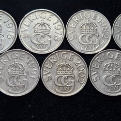 Svenska mynt präglade under Carl XVI Gustafs era berättar historien om en period av snabba förändringar, teknologiska framsteg, och sociala omvandlingar. Från 1970-talets industriella och kulturella blomstring till 2000-talets digitala revolution, har dessa mynt varit tysta vittnen till en dynamisk och ständigt föränderlig tid. Genom att samla på dem, blir man del av denna storslagna berättelse, sammanflätad i metall och tid. Om du bläddrar igenom Traderas rika utbud kommer du att stöta på en fascinerande samling av metalliska konstverk. Bland dessa finner man allt från jubileumsmynt, som firar speciella nationella evenemang eller årsdagar, till särskilda designförändringar som reflekterar tidsandan. Det finns också begränsade upplagor som endast präglades under en specifik period, vilka är särskilt värdefulla för samlare och historieentusiaster.