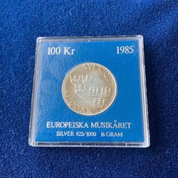 8 stk. 100 Kroner Mønt 1983 - 128 g. Sølv 925