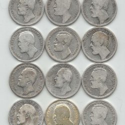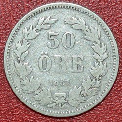 12 st Oscar ll, Sølvmønter, Pålydende 1 kr. år 1875 - 1906.