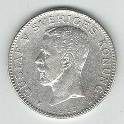 1 st Gustaf V, Sølvmønt, Værdi 2 kr. år 1915.
