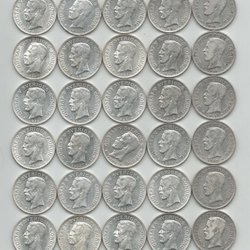 30 st Gustaf V, Sølvmønter, Værdi 2 kr. år 1910 - 1940.
