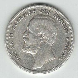 1 st Oscar ll, Silver-JUB-mynt, Valør 2 kr. år 1872 - 1897.
