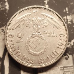 2 Reichsmark sølv 1939 D Ønskværdigt samlermynt