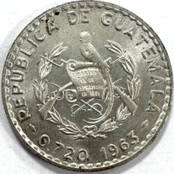 Guatemala 50 Centavos 1963 - sølv (vare 671)