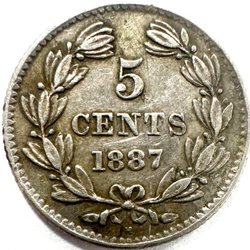 Nicaragua 5 Centavos 1887 - sølv (vare 676)