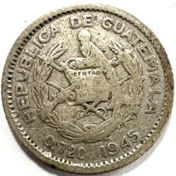 Guatemala 5 Centavos 1945 - sølv (vare 680)