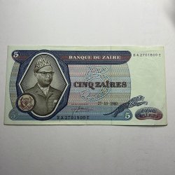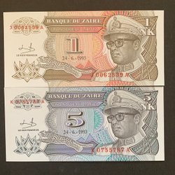 Zaire-pengesedler 1 & 5 NK 1993 UNC