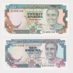 Zambia 10+20 kwacha UNC p31b, p32b