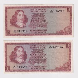 Sydafrika 2x1 rand 1973-1975 cirkulerede p115a, p115b