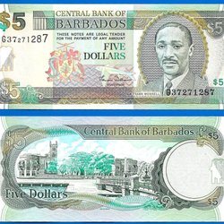 Barbados 5 dollar 1975 Oomløbet seddel Central Bank Barbades