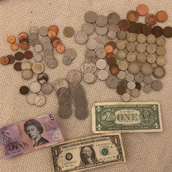 Samling af sedler og mønter fra forskellige lande