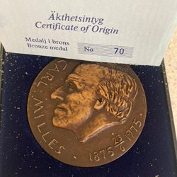 Carl Milles Bronsmedalj 1875-1975 Sporrong Minnesmedalj