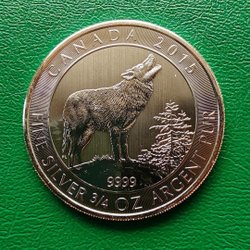 Canada 2 Dollars 2015 Howling Wolf. 3/4 OZ .9999 sølv.