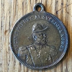 Medalj, medaljong. Oscar II Konung Af Sverige & Norge.