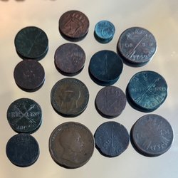Forskellige kuriøse mønter medaljer