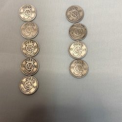 Samling af alle årgange af 10-øres kobbernikkelmønter 1920-1947