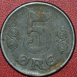 5 øre Zink 1945 - Svåraste året - Christian X Danmark KM#834a WWII