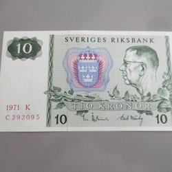 10 kroners seddel 1971 Lavt Nummer! Ufoldet