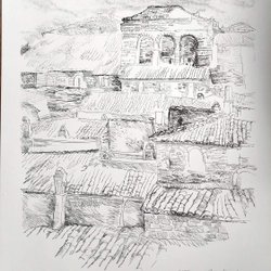 Tore AHNOFF Signeret litografi ”Tak i solen” (Pitigliano), 1980