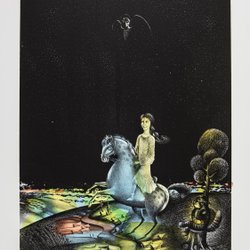 Drøm - Håndfarvet litografi - Signeret