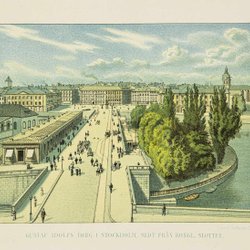 Gustaf Adolfs Torg i Stockholm - Kolorerad Litografi