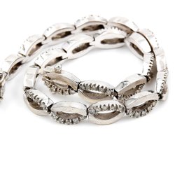 Statementarmbånd med naturlige skinnende skaldele & hvide metallænker