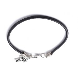 Håndlavet sort læderarmbånd med sølvbelagt kors 20 cm.