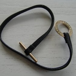 Svart Dyrberg/Kern ægte læder armbånd med forgyldt lås med tekst, ubrugt