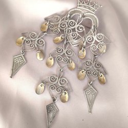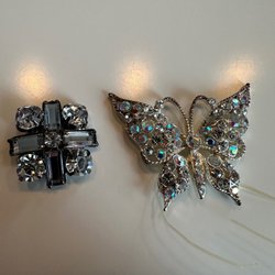Broscher förknippas ofta med ädelstenar, guld och silver. Trenderna genom årtiondena har dock även lämnat plats för retrobroscher och färgglada plastvarianter. Broscher finns i ett närmast oändligt antal olika varianter, både trendiga och klassiska. I Traderas utbud av begagnade broscher kan man hitta broscher silver och broscher guld. I allra bästa fall finns en Chanel brosch eller två ute för auktion – en dröm för den som gillar att klä sig klassiskt stilrent. Den som vågar ta ut svängarna har ofta ännu mer att hämta. Broscher, smycken och kläder är ett intresse som delas av många. Individuella preferenser styr garderobens innehåll och dessa förändras över tid. Titta igenom utbudet av aktiva annonser så kan du upptäcka broscher som gjort sitt i en persons smyckesgarderob, men som blir huvudnumret i din. Hos Tradera har du möjlighet att hitta begagnade broscher i alla prisklasser, från slutsålda varianter från budgetkedjorna till diamantprydda varianter från välkända juvelerare.