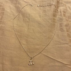 Halskæde i sølvfarvet metal med klemme. Kædelængde ca. 79 cm