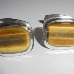sølv manchetknapper med tigerøje, vintage