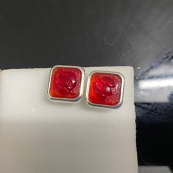 Eksklusive øreringe i 925 ægte sølv med dybrød sten