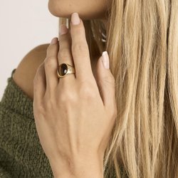Statementring i 14 karat med en tigerøje strl. 17.5 / strl. 55