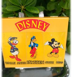 Disney trækasse med Anders, Långben og Mickey Mouse vellavet vintage FIN stand
