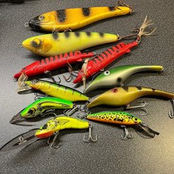 UDDA ANNORLUNDA SAMLARDRAG FÖR SAMLAREN FISKE DRAG ÄLDRE WOBBLER i TRÄ BRA SKICK