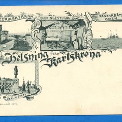 Köp begagnade och oanvända gamla svenska vykort och bilder från Blekinge hos Tradera. Här har du möjlighet att lägga bud på kort, både med och utan text, från olika tidsepoker och med bilder över kända platser runt om i Blekinge. Kanske är tanken att använda dem för att skicka annorlunda vykort till nära och kära eller för att spara som ett spännande samlarobjekt. Är man bosatt i Blekinge är det dessutom kul att titta på gamla bilder från förr och se hur platserna har förändrats med tiden. Här återfinns bilder på små gator och torg, men också över byggnader som Stennäs Gård i Karlshamn eller Ingenjörstruppernas kasern i Karlskrona. Vissa kort är postgångna och andra inte - välj själv vilket typ av vykort eller bild du önskar i din samling.