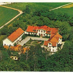 Fotö, luftfoto med fodboldbanen oppe t.v.