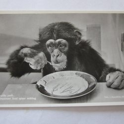 Kort Furuviks park Chimpansen Sussi spiser middag gamle format uskrevet
