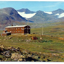 Postkort fra Grønlandalen med Kungl. Jaktklubbens jagthytte