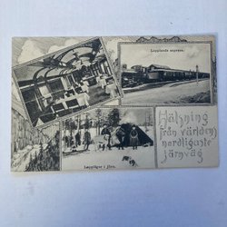 Postkort Abisko jernbane lokomotiv og malmvogne Abiskojokko